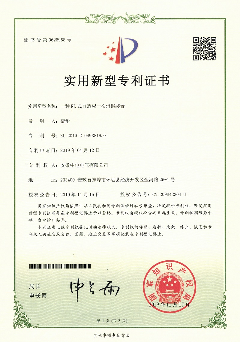 證書RL式自適應(yīng)一次消協(xié)裝置