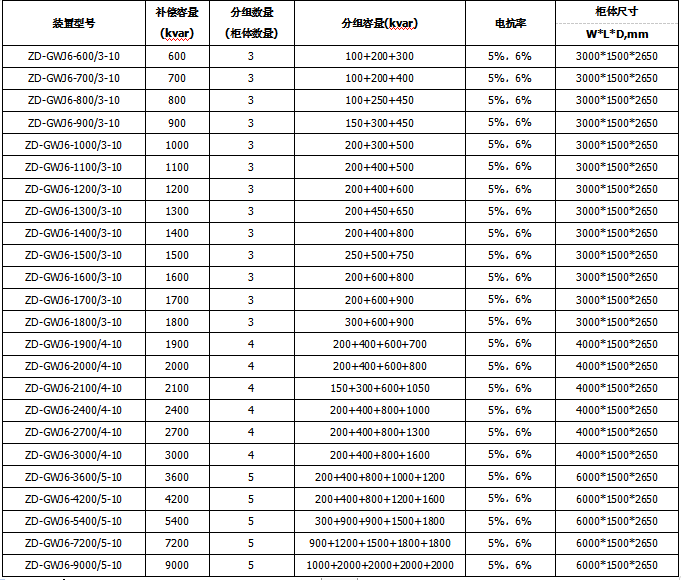 ZG-GWJ裝置適用于3~35kV系列電力系統(tǒng)中,用以補(bǔ)償系統(tǒng)無(wú)功功率,提高功率因數(shù),調(diào)整電網(wǎng)電壓,降低線路損耗,改善供電質(zhì)量,提高供配電設(shè)備的使用效率,容量可從數(shù)百千乏到數(shù)萬(wàn)千乏。該裝置在主接線型式、保護(hù)方式、限制涌流及抑制諧波過(guò)負(fù)荷等方面進(jìn)行了綜合考慮,以保證運(yùn)行安全可靠;裝置結(jié)構(gòu)簡(jiǎn)單、緊湊,便于現(xiàn)場(chǎng)安裝和維護(hù);可用于冶金、礦山、石油、化工、機(jī)械、建材、市政、輕工等行業(yè)。